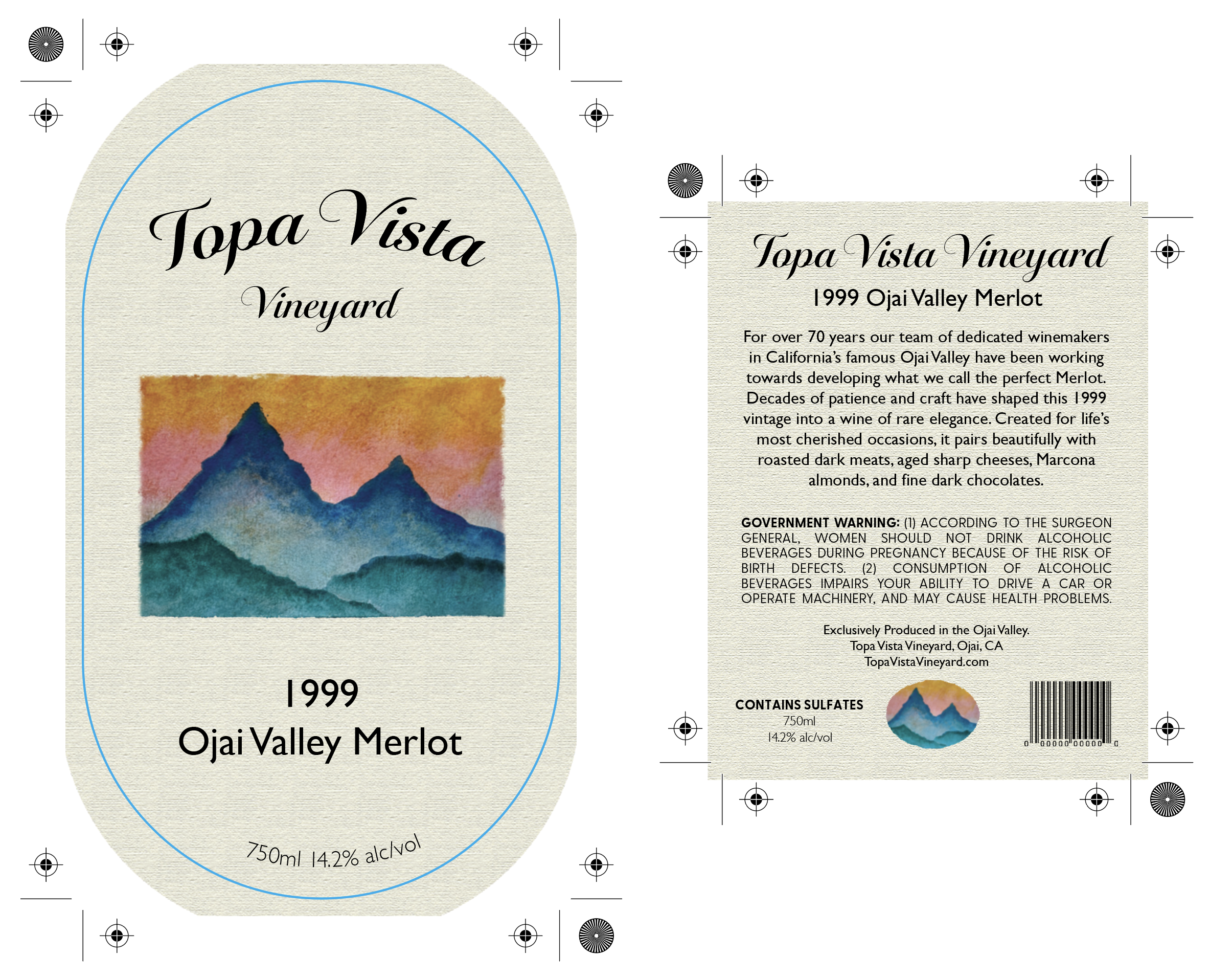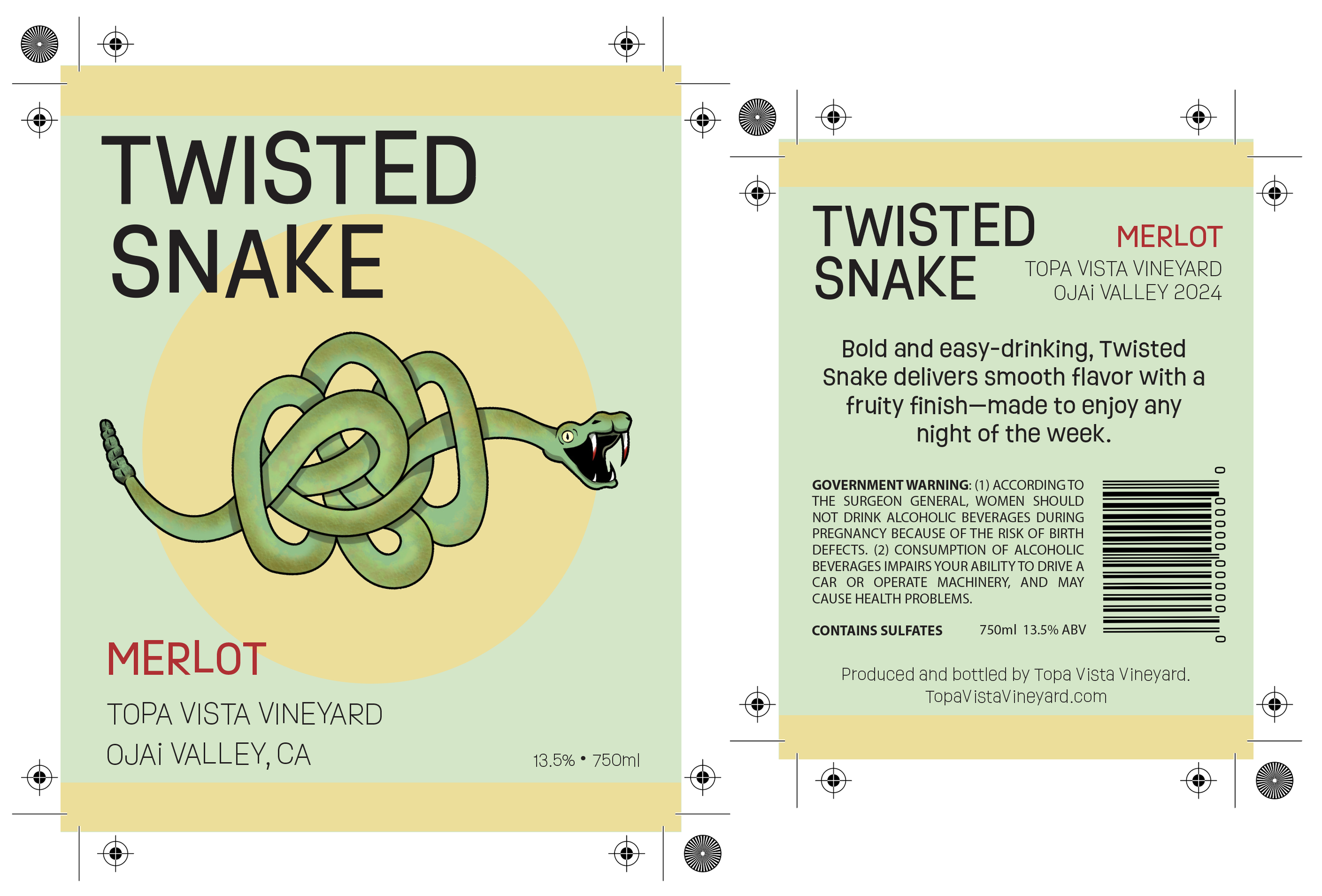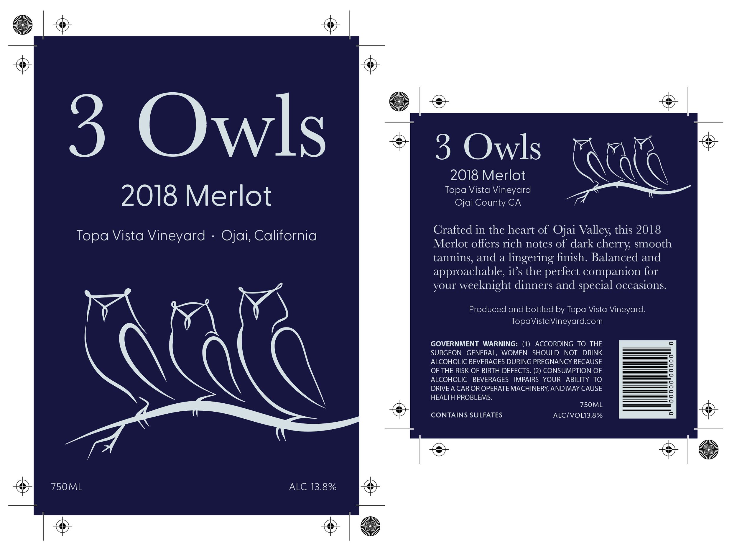 I designed three wine labels at three different price points for Topa Vista Vineyards; all inspired by the beautiful wildlife and scenery of the Ojai valley. The more affordable option: Twisted Snake is catered towards a younger audience. The mid-tier option: 3 Owls offers a slightly more elegant choice. While the premier variety Topa Vista Vineyards’ aged merlot should be reserved for special occasions.